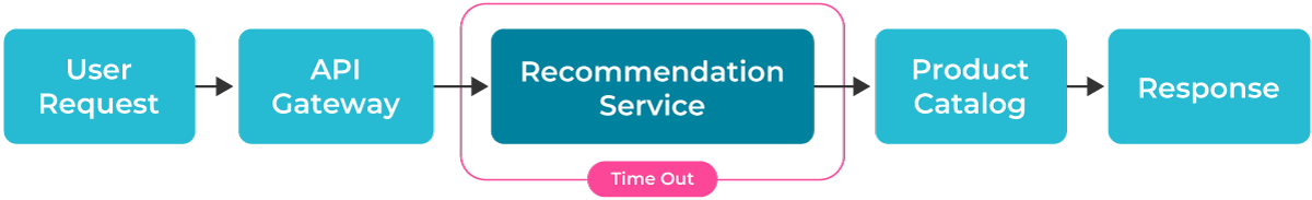 At this level, distributed tracing would be used to connect requests across service boundaries, to show exactly where latency gets added or where failures occur. In the recommendation algorithm example above, distributed tracing would reveal that the latency spike comes from the new algorithm making synchronous calls to a recommendation service that times out under load. The trace would show the full request path: