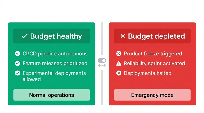 - Governance layer: Sits above the telemetry layer, ingesting that data and evaluating it against defined reliability targets to produce one authoritative answer: are we within budget or not?