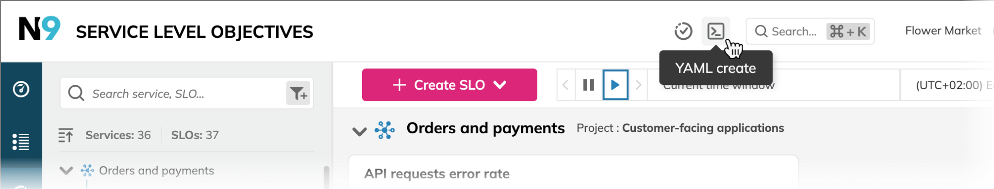 You can define and apply YAML configurations of your required Nobl9 resources directly in the Nobl9 Web application. Either paste your prepared YAML definition here or use templates for further fine-tuning. (source)
